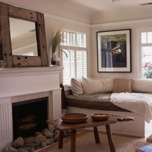 Create a sense of movement and make a room feel larger by floating big furnishings away from walls. Allowing air space between the wall and seating pieces gives the impression of depth and more room. Another option is to place furniture in the corners of rooms at an angle and use the space behind to stash baskets of extra linens, toys, crafts supplies, or whatever else you need to store.